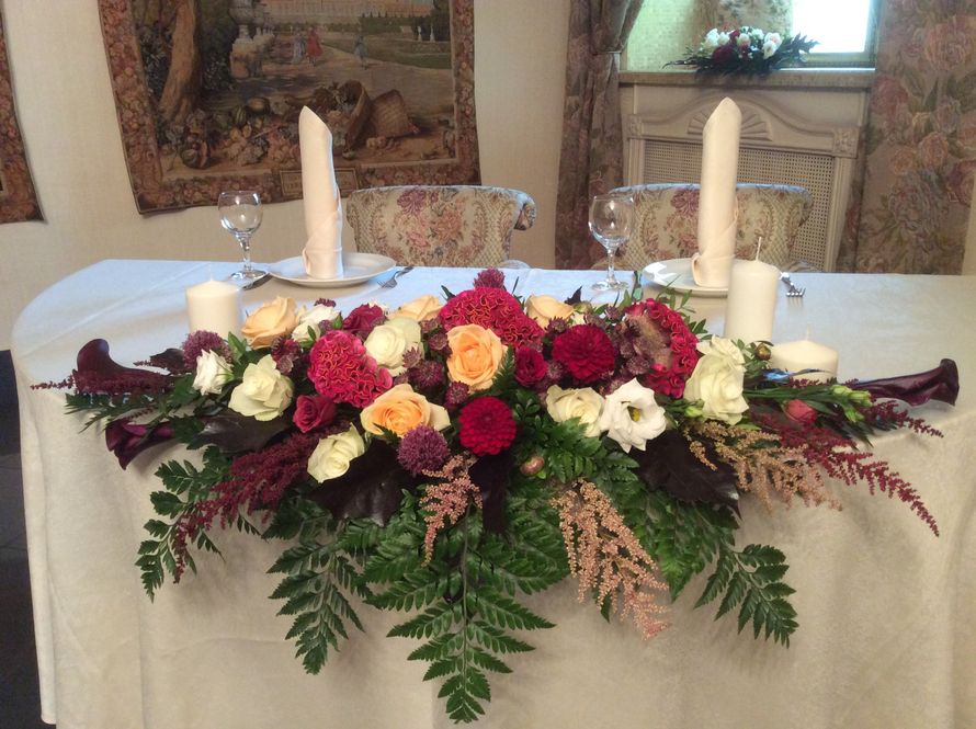 Милые барышни-невесты! Понимаю ваше волнение и пристальное внимание к свадебным деталям. Свадьба же не каждый день...), и хочется, чтобы это событие запомнилось и молодоженам и гостям и даже искушенным работникам ЗАГСА)). Так вот, все мои усилия, творческие и физические, на каждом свадебном проекте направлены на перфектный во всех отношениях результат: чтобы невеста не беспокоилась за "жизнестойкость" своего букета, чтобы у жениха не болела голова о том, как и когда он заберет перед свадьбой букет невесты, чтобы гости ахнули, войдя в роскошно оформленный цветами зал ресторана, и многое-многое другое, что характеризует результат работы профессионального флориста-оформителя.
